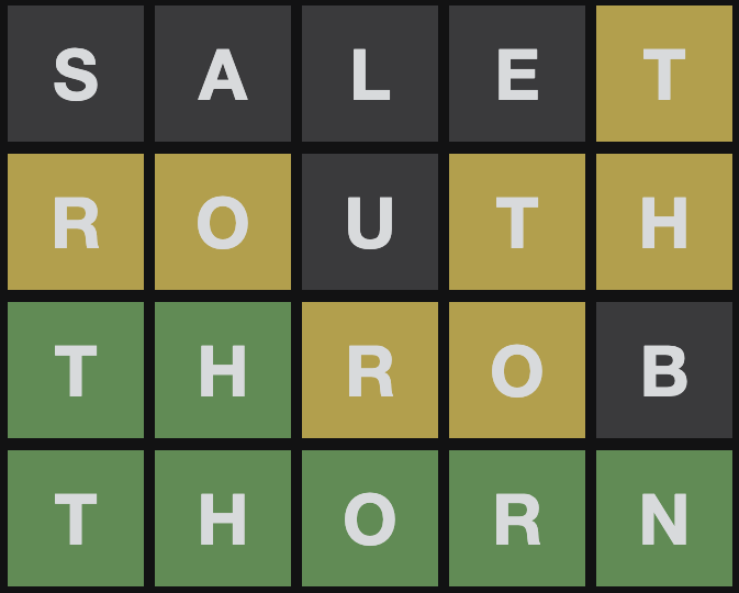During the pandemic Wordle was extremely popular. It was so popular that it was the top Google search term globally in 2022. But what is Wordle? Wordle is a word game, where you have 6 attempts to guess a five-letter word. As you make attempts you get clues and hints about the final answer. The clues are as follows: