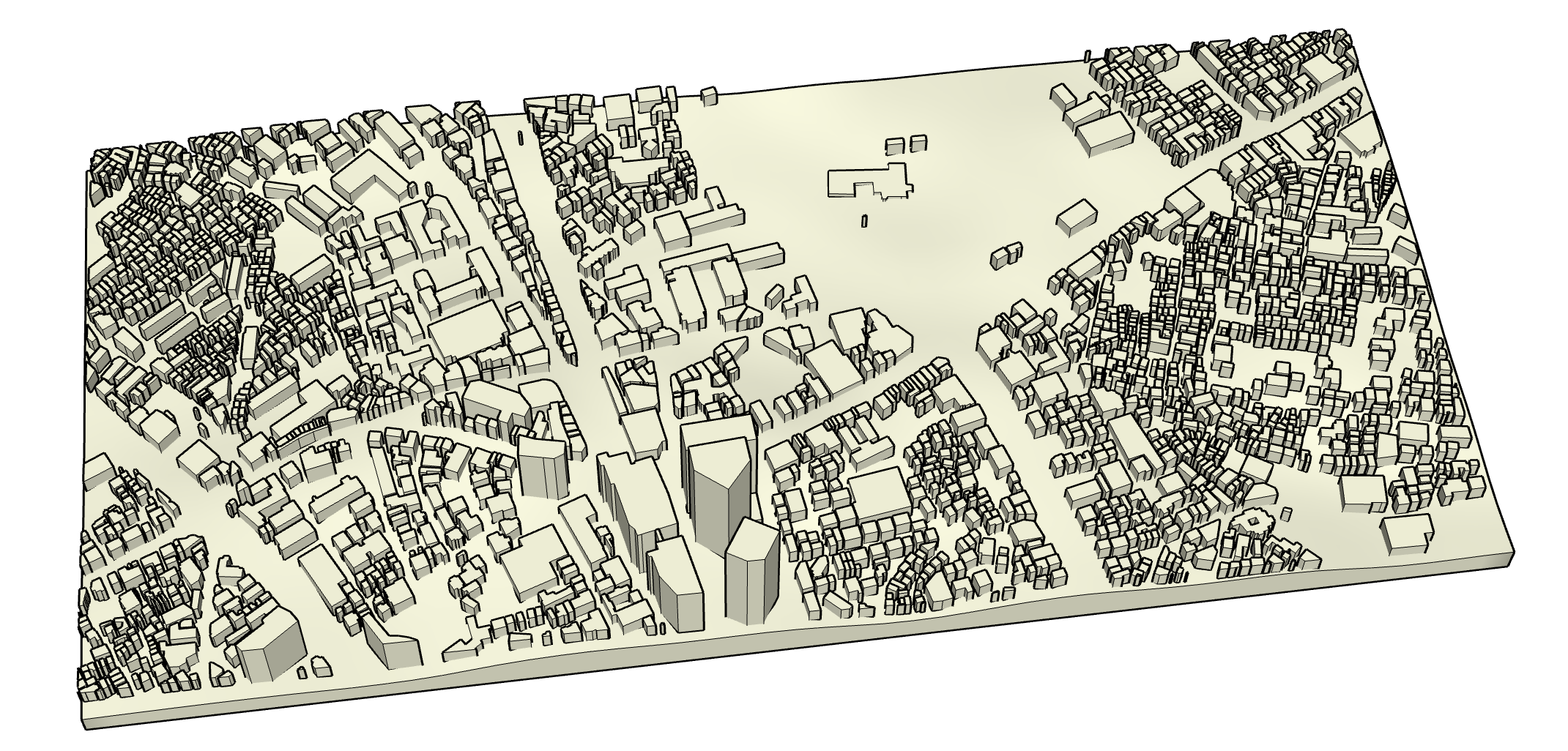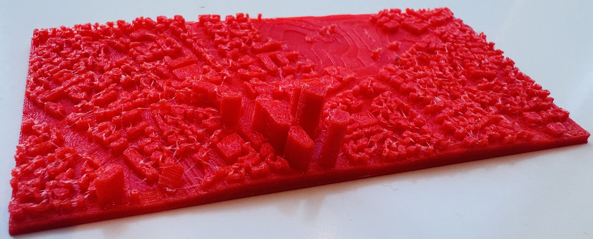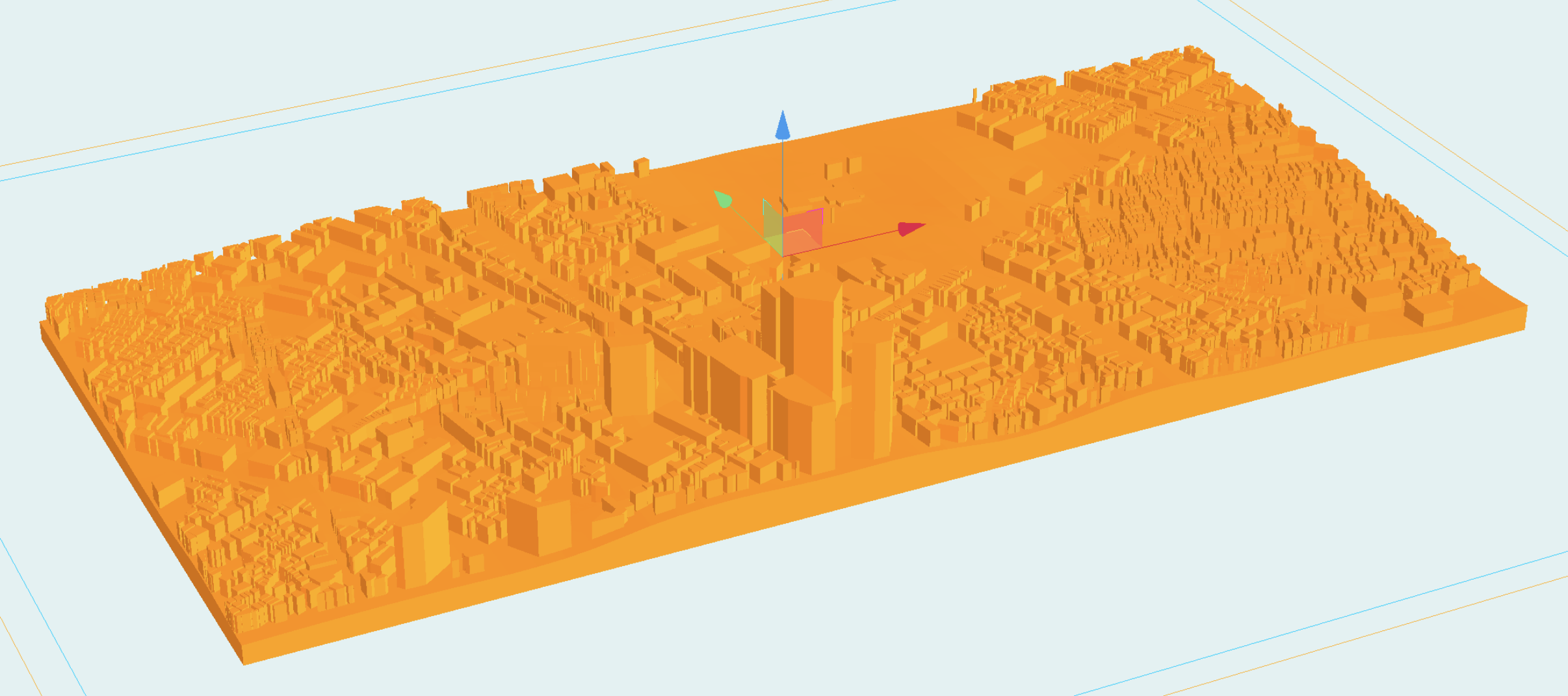 3D printing while cool, the end results fails to capture the essence and emotions associated to a place where a photo and video could do it proper justice. Granted the finished job could have been better if I had proper experience; the lack of color, stringing, and finer details takes the aesthetics away. While the end results was not what I was expecting, still cool to go through the journey. Its nice to have a 3D representation of a familiar place. If I where to do it again, I would spend the time and adjust the building heights appropriately and maybe change the scale/dimensions of the model. Unfortunately there where 2035 buildings total and so few time (。-ω-).